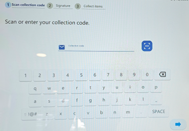 Scan the unique QR code (which can be found in the Picklah collection email) onto the barcode reader at the bottom of the screen.